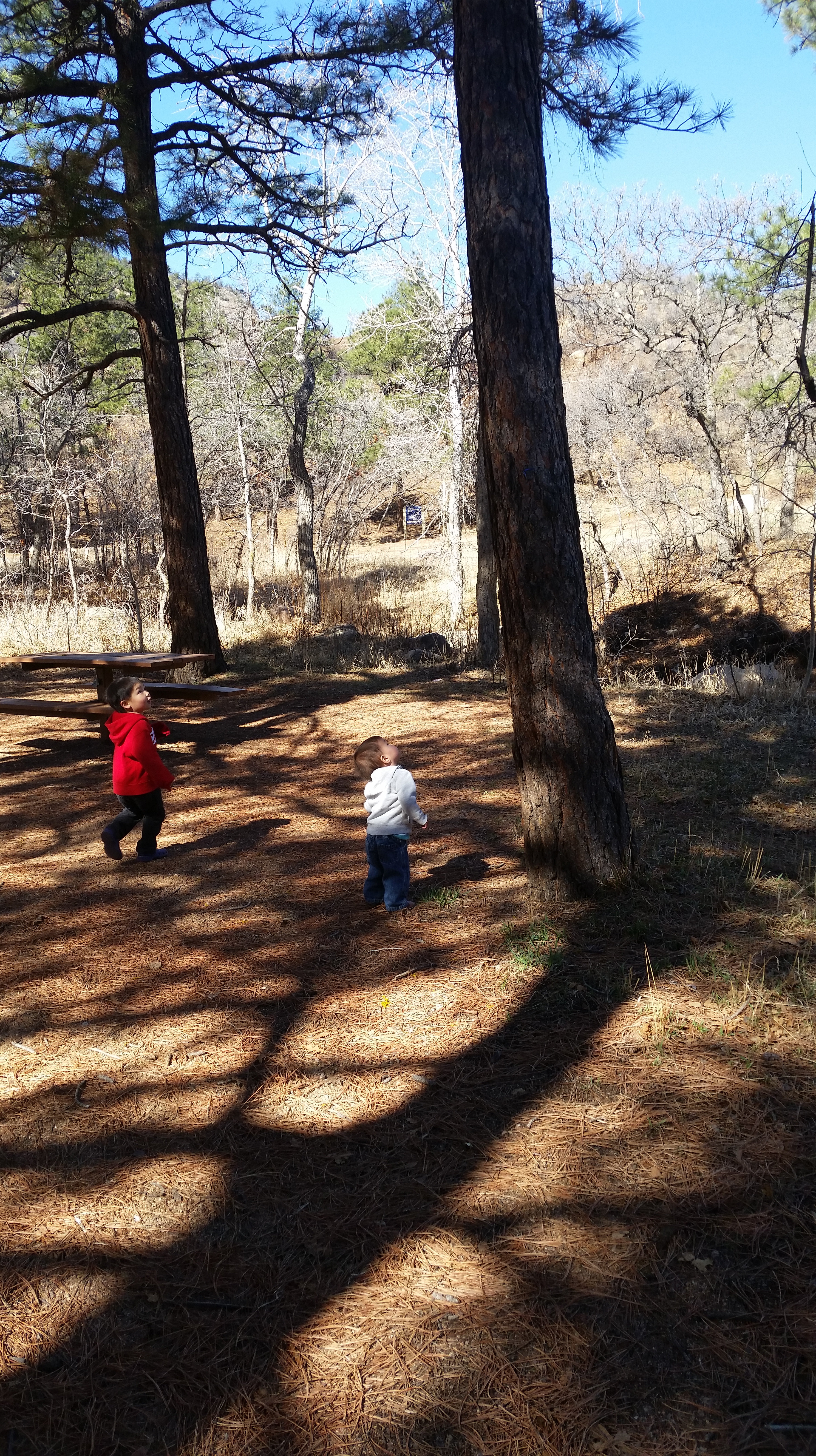Dann wurde das Wetter allerdings auch schon wieder besser, und wir sind ganz viel draußen gewesen. Ganz in der nähe von mir gibt es ein Discovery Center mit Picknick-Ecke und einem Bach, und Kit und James lieben es, dort nach Eichhörnchen zu jagen oder Steine ins Wasser zu werfen.